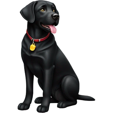 Black Labrador retriever with blonde haired woman and long black haired man emoji