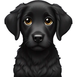 sweet black labrador puppy with big eyes eats a cookie emoji