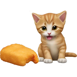 Black fluffy cat eating chicken nuggets emoji
