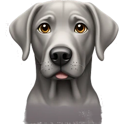 elderly jowly grey black labrador with a red collar that has nothing else on it. emoji