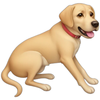 old slightly grey black labrador with a red collar that has nothing else on it. emoji