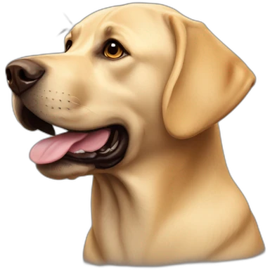 elderly jowly grey black labrador with a red collar that has nothing else on it. emoji