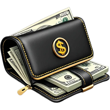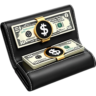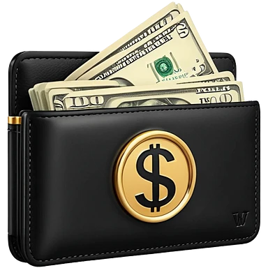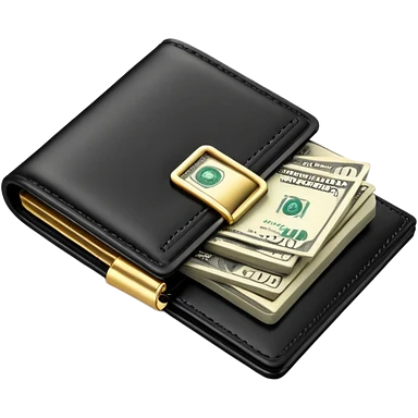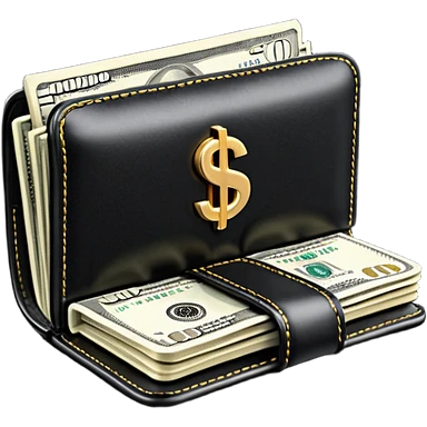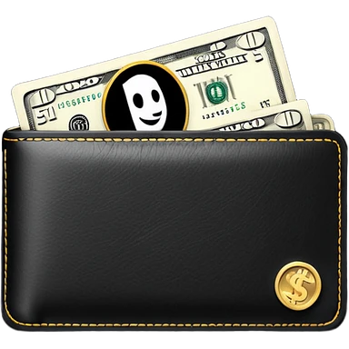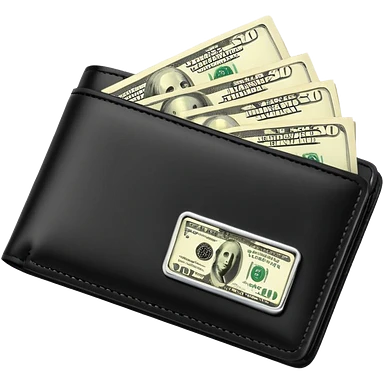 black leather wallet with green dollar bills sticking out emoji | AI Emoji Generator