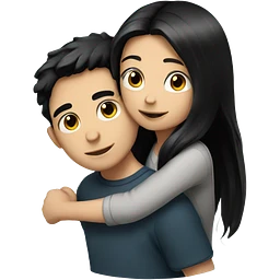 a boy with brown eyes and brown short hairs hug a girl with green eyes and long black hair emoji