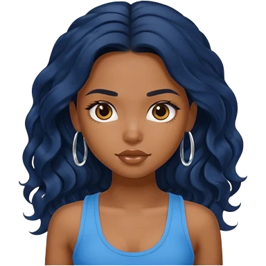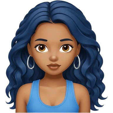 a pretty bratz brown girl with long wavy black color hair and a blue tank top on emoji
