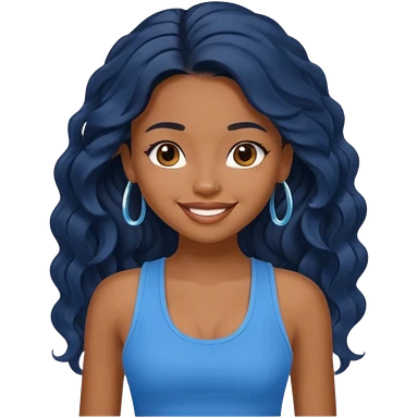 Black long wavy hair white skin navy blue tank top blue eyes emoji