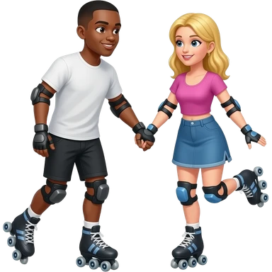 Black man with shaved in red t shirt hugging blonde woman in red t shirt emoji