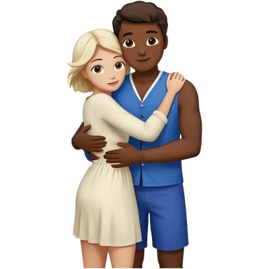 black man and white woman hugging emoji
