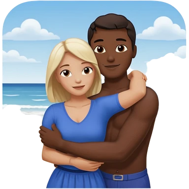 Metis black Man and white woman hug in love on beach emoji