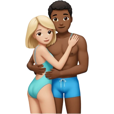 ligh skin black hair man and ligh skin black hair woman swin suit full body having fun emoji