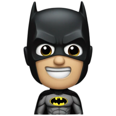 The image depicts a cartoon character dressed as Batman, holding a blank piece of paper. The background is black. emoji