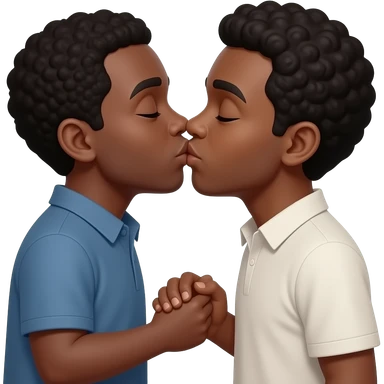 Black man with shaved head kissing blonde girlfriend on k emoji