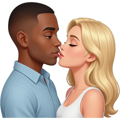 Black man with shaved head hugging & kidsing his sad blonde girlfriend emoji