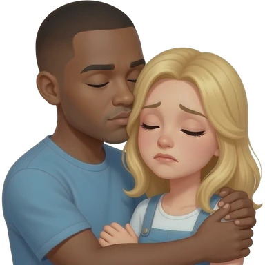 Black man with shaved head hugging his sad blonde girlfriend emoji