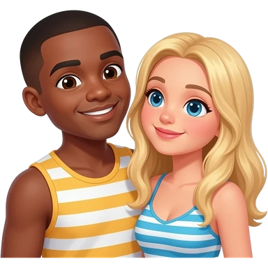 Black man with shaved head kissing blonde girlfriend on the beach emoji