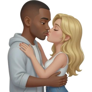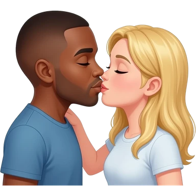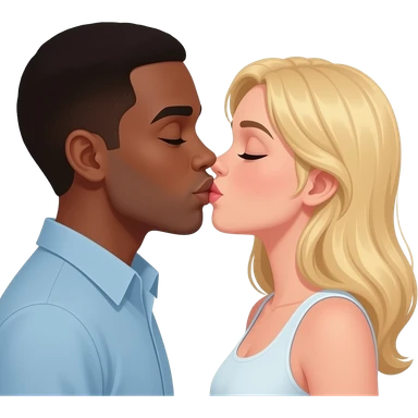 Black man kissing his blonde girlfriend on lips emoji
