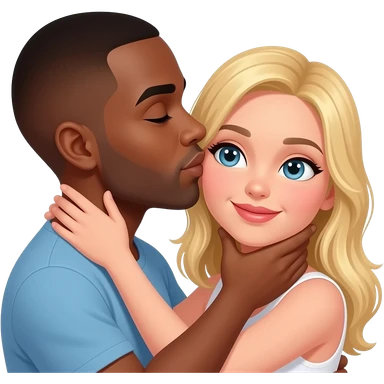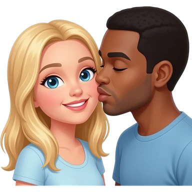 Black man with shaved head kissing blonde girlfriend on the neck emoji
