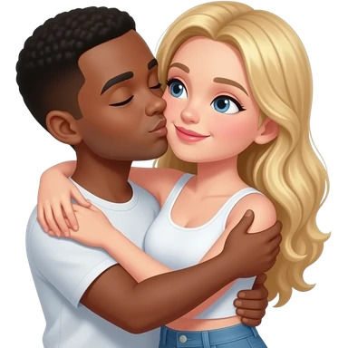 Black man kissing and hugging blonde girlfriend emoji