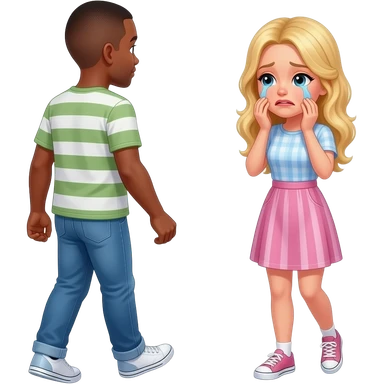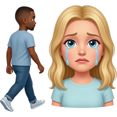 Black man with shaved walking away in the other direction from crying blonde girlfriend emoji