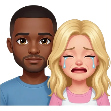Black man with shaved head & blonde girlfriend cryig emoji
