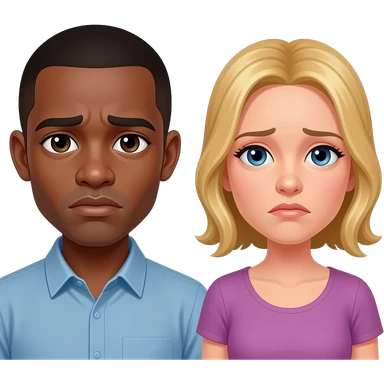 Black man with shaved head & blonde girlfriend being sad emoji