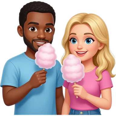 Black man & blonde girlfriend eating cotton candy together emoji