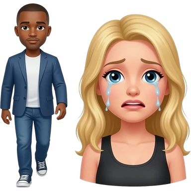 Black man with shaved walking away from crying blonde girlfriend emoji