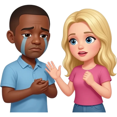 Black man with shaved head breaking up with blonde girlfriend crying emoji