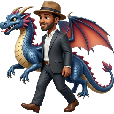 man and dog, tall bearded black man walking blue Merle Great Dane, illustration style emoji