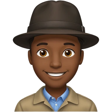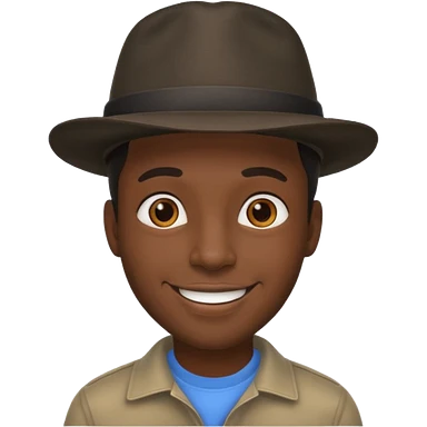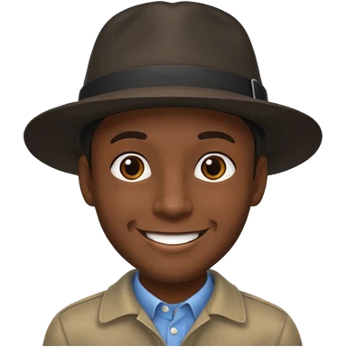 Black man photographer wearing black fedora, short dark brown messy hair, stubble, smiling emoji