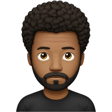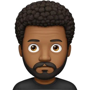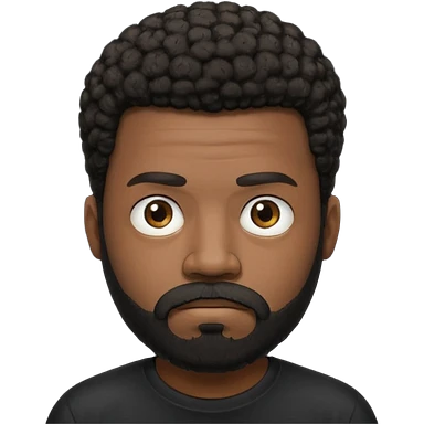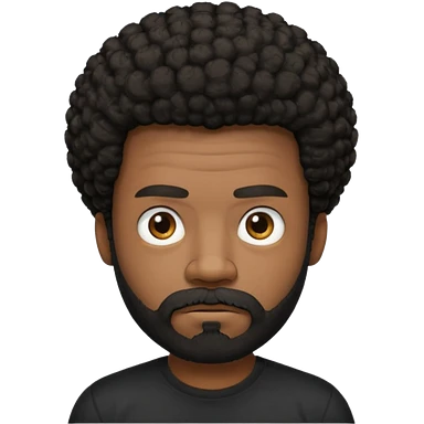 black man with beard, mustache, and short afro frowing wearing a black tee emoji