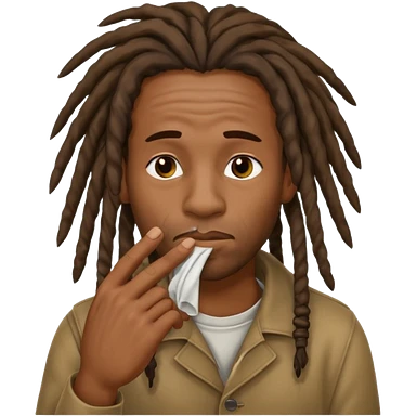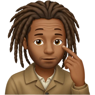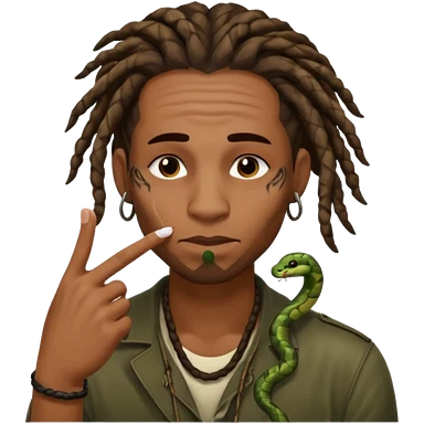Black man with dreads and snake tattoo on forehead wiping his nose perpendicular with index finger emoji | AI Emoji Generator