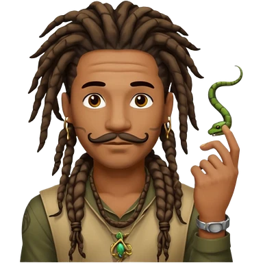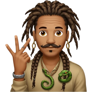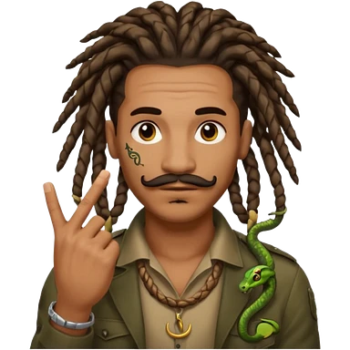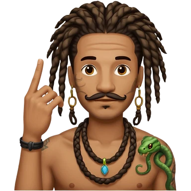 Black man with dreads and snake tattoo on forehead making a mustache with index finger emoji