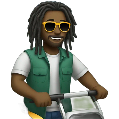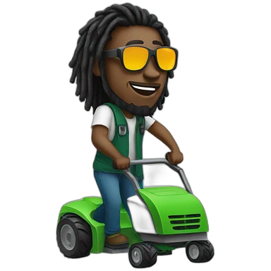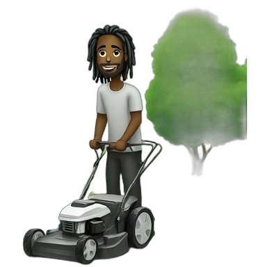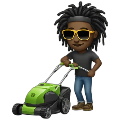Black man with dreads in ponytail is mowing lawn it a push lawn mower emoji