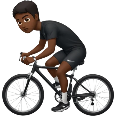 Muscle man with dark hair and darker skin , wearing black shirt nike, riding on bike going to fall down emoji