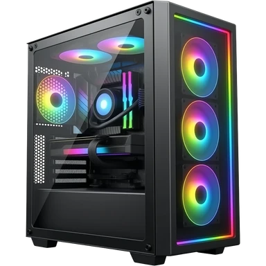 Black gaming PC RGB mid-tower case with glass side panel emoji