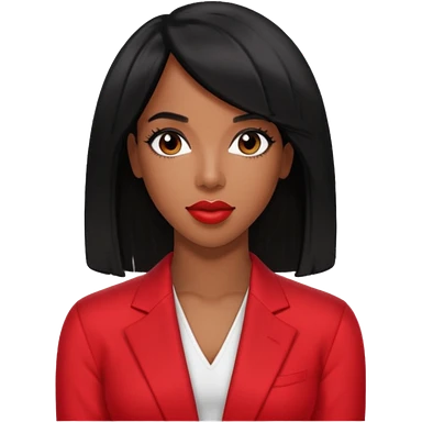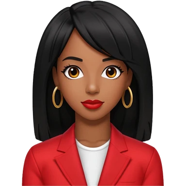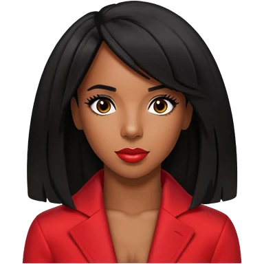 Kelly Rowland with black hair, red outfit emoji