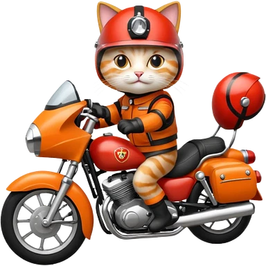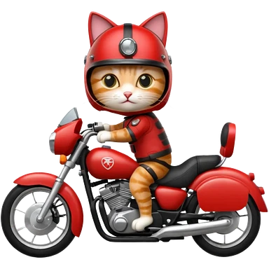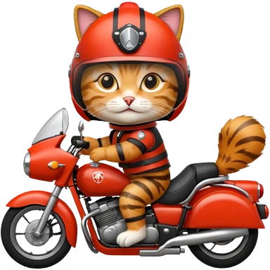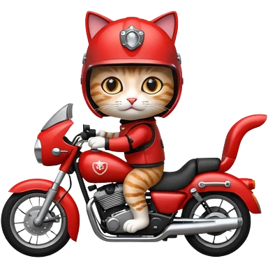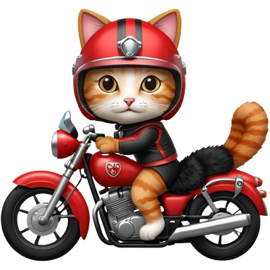 Cat on red and black motorcycle with helmet emoji