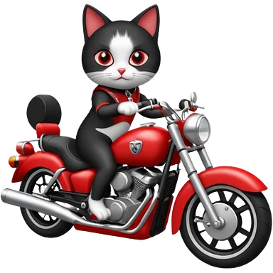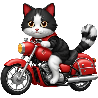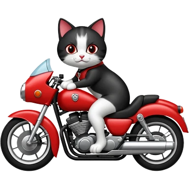 Black and white Cat on red and black motorcycle emoji