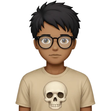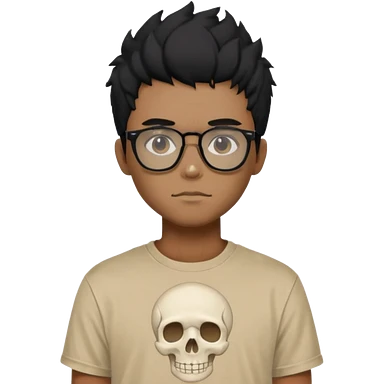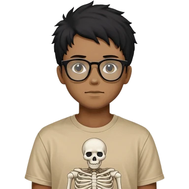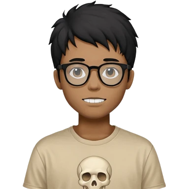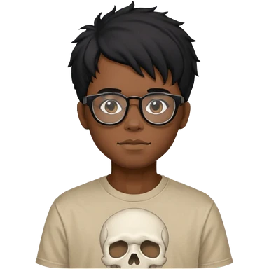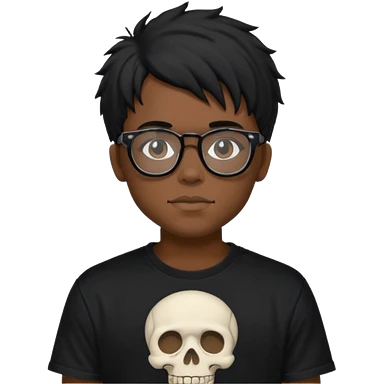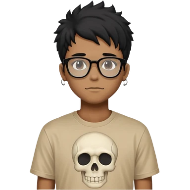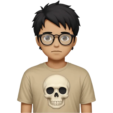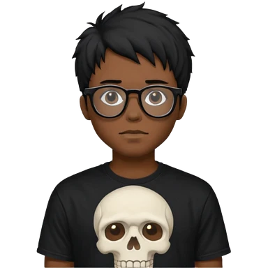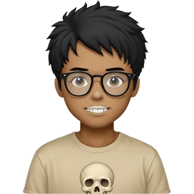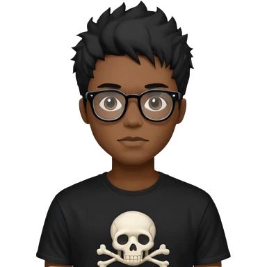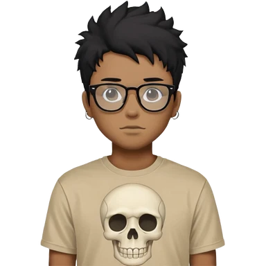 black anime hair guy with skeleton makeup wearing a stussy tshirt with glasses emoji