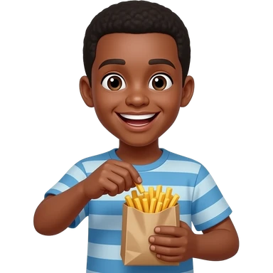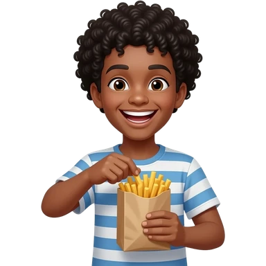 Black emoji teen with Afro laughing while putting the fries in the bag emoji