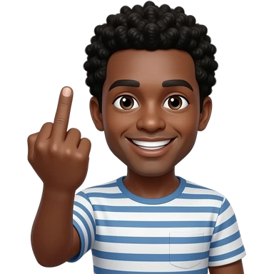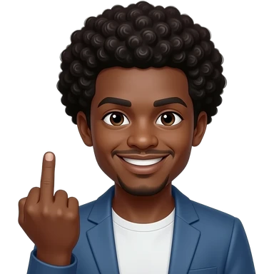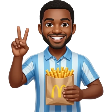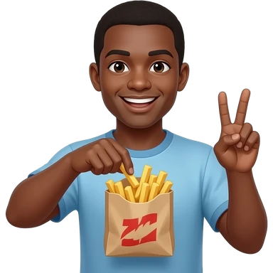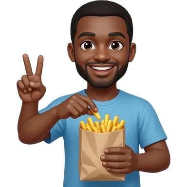 Black emoji Man putting fries in the bag smiling , holding up the peace sign emoji