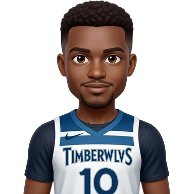 Black skin 22-year-old in a NBA jersey that is white and then the outlander blue and it says Timberwolves on it and it also has the Nike logo make the number number 10 and have them a kind of a fluffy low taper fade brown emoji