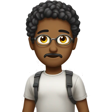 adolescent au visage impassible. Cheveux chatains frisés courts emoji