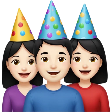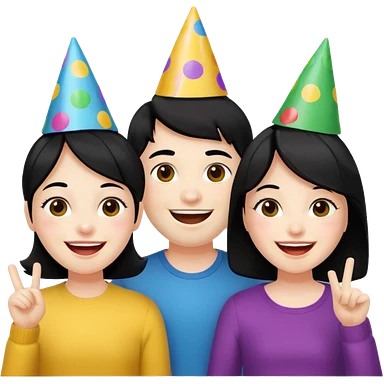 winners podium with three people, black and white, center step higher, no numbers, all in relaxed fun clothes, center person raising one finger on each hand, cheerful expressive emoji style emoji
