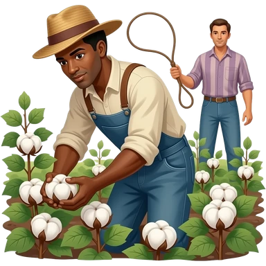 black person picking cotton at farm and a person with a whip in the background emoji