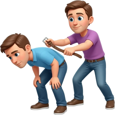 Make an emoji of a person bending over with a person behind them hitting them with a belt emoji