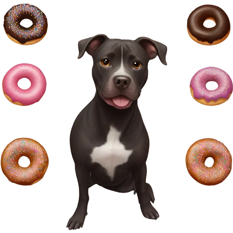 Black pitbull fused with a chocolate doughnut emoji | AI Emoji Generator