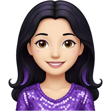 Katy Perry with long black hair, lavender sequin outfit emoji