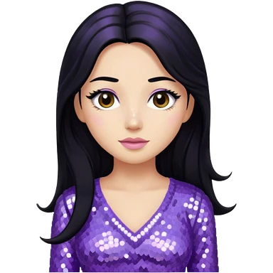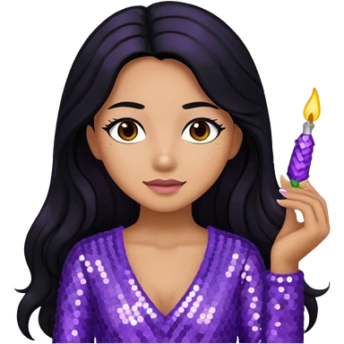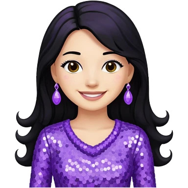 Esther from The Bible with long black hair, lavender sequin outfit emoji